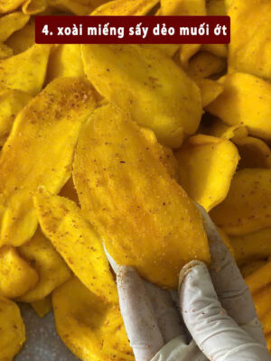 Quy trình điều vị sản phẩm xoài sấy dẻo được thực hiện bằng cách ngâm xoài trong dung dịch đường 3-5% và được bảo quản trong kho lạnh