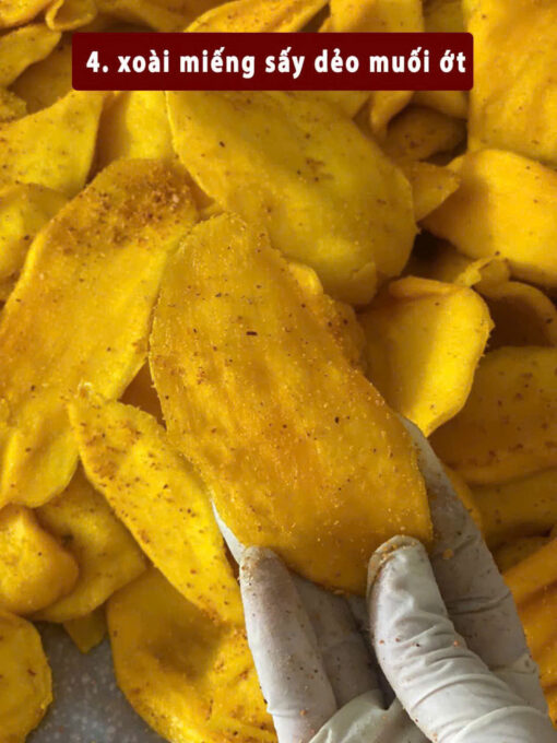 Điều vị cho sản phẩm xoài sấy dẻo là công đoạn giúp mùi vị được đồng nhất giúp xoài thơm ngon hơn. Ngoài ra, điều vị còn giúp tăng thời gian bảo quản của sản phẩm xoài sấy dẻo.