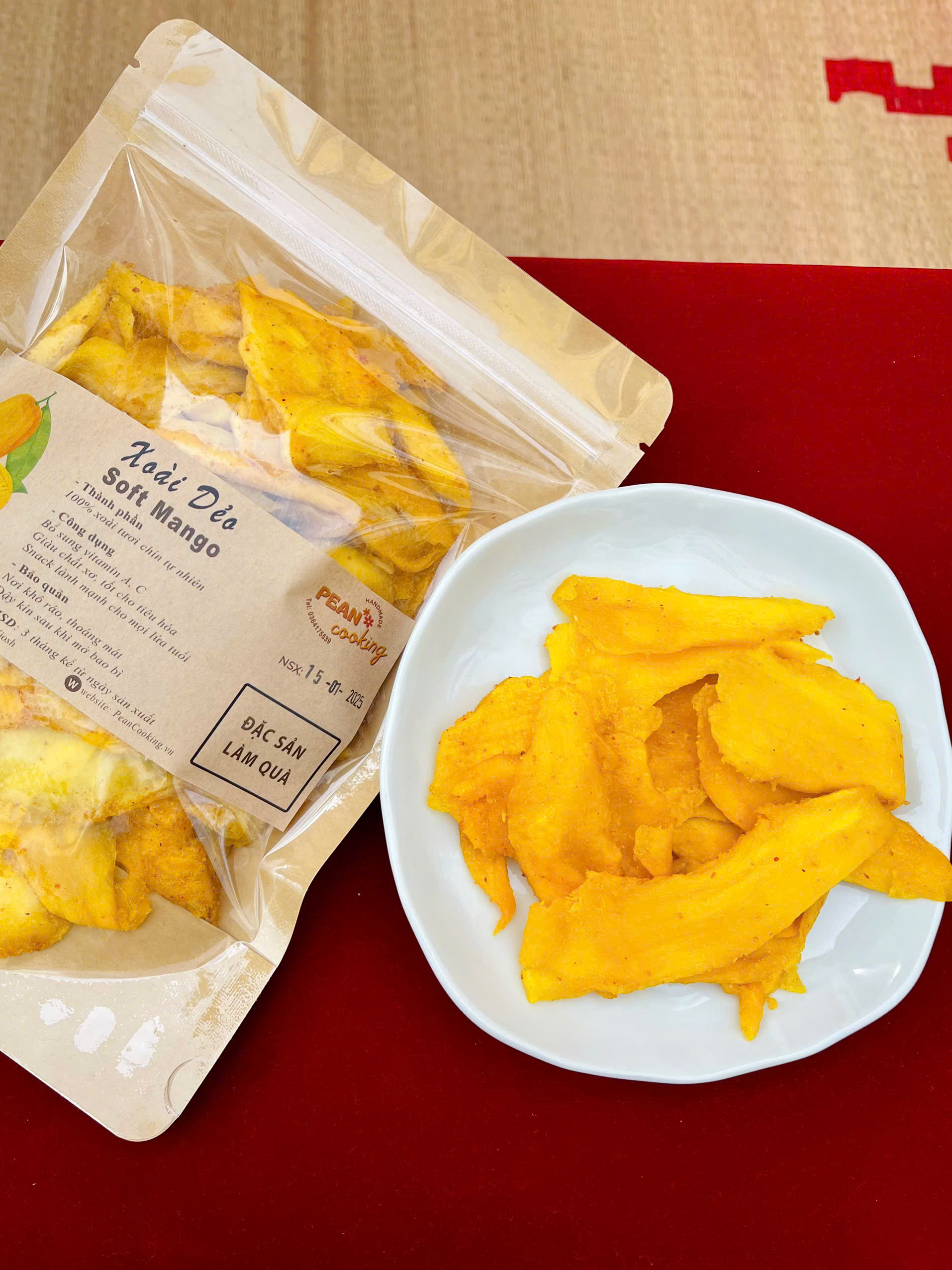 Được chế biến từ 100% xoài chín cây tự nhiên đạt chuẩn xuất khẩu, xoài mảnh sấy dẻo giữ trọn vẹn hương vị tươi ngon cùng giá trị dinh dưỡng. Không phẩm màu, không chất bảo quản, sản phẩm an toàn và phù hợp với mọi lứa tuổi.